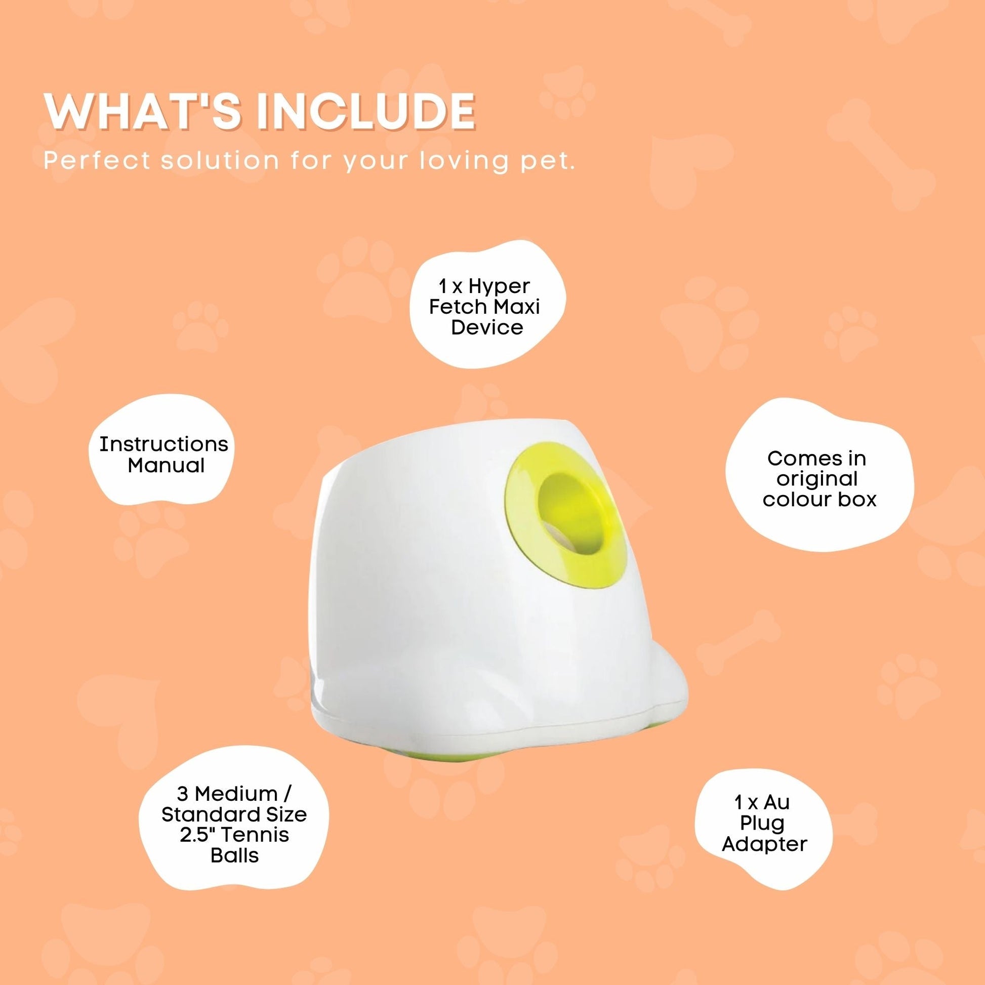 - Thirdly, put the balls in the ball basket on the top of the Hyper Fetch Maxi. Finally, when balls are placed into the ball basket, the Hyper Fetch Maxi will throw a ball every 10 seconds.